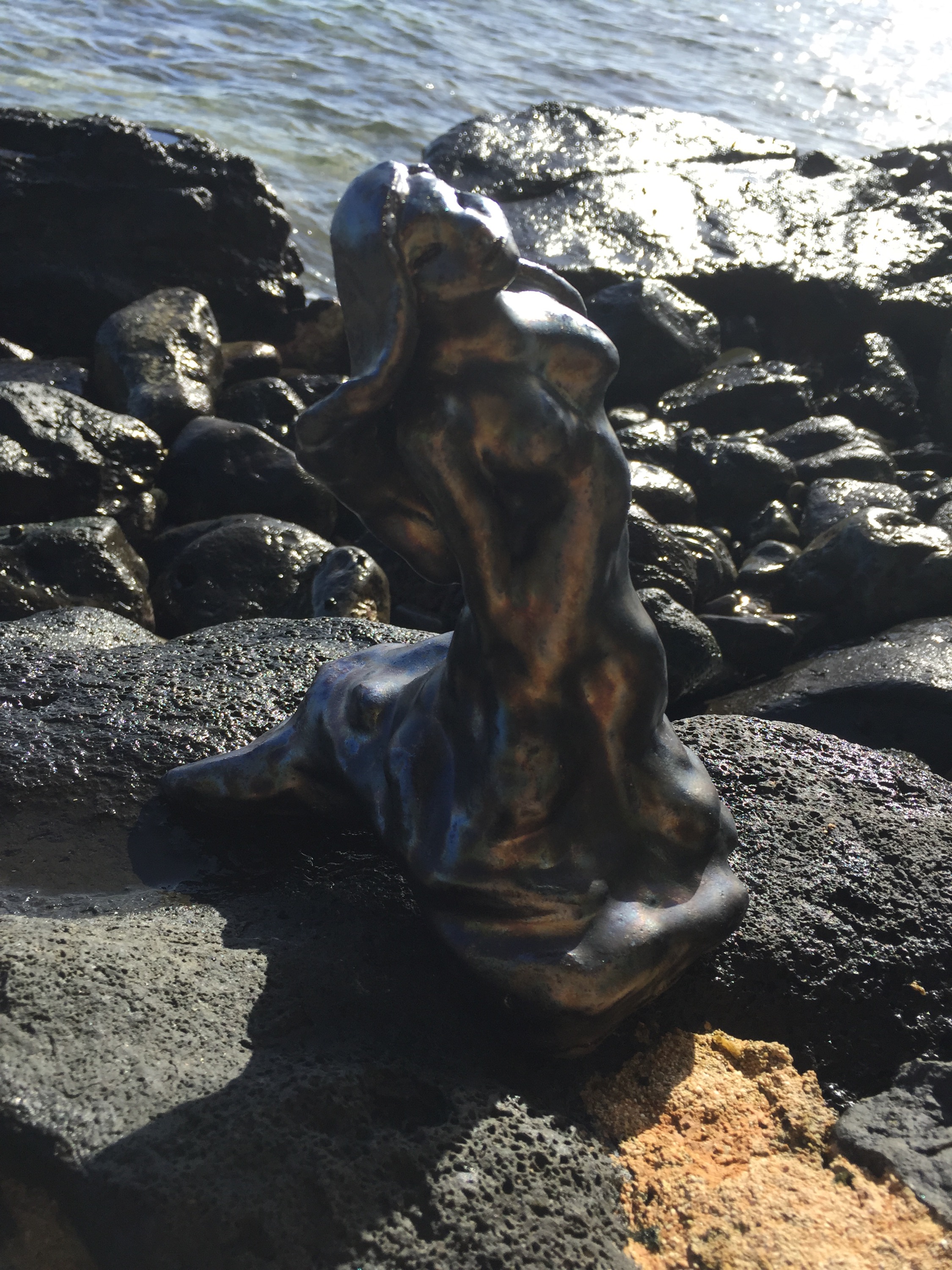 Being on the island of Oahu, on the side of the Haumea Bay, traveling alongside the immense cliffs with the thundering sapphire sea crashing onto the black stained rocks,I can feel the terrible and awesome power of nature, and how little we people all are in comparison. I can completely understand how people on the Hawaiian islands paid such respect to these powers. The fierce volcano on Big Island must be something so mighty that I can now imagine what it means to worship and fear something so incomprehensible and beautiful.