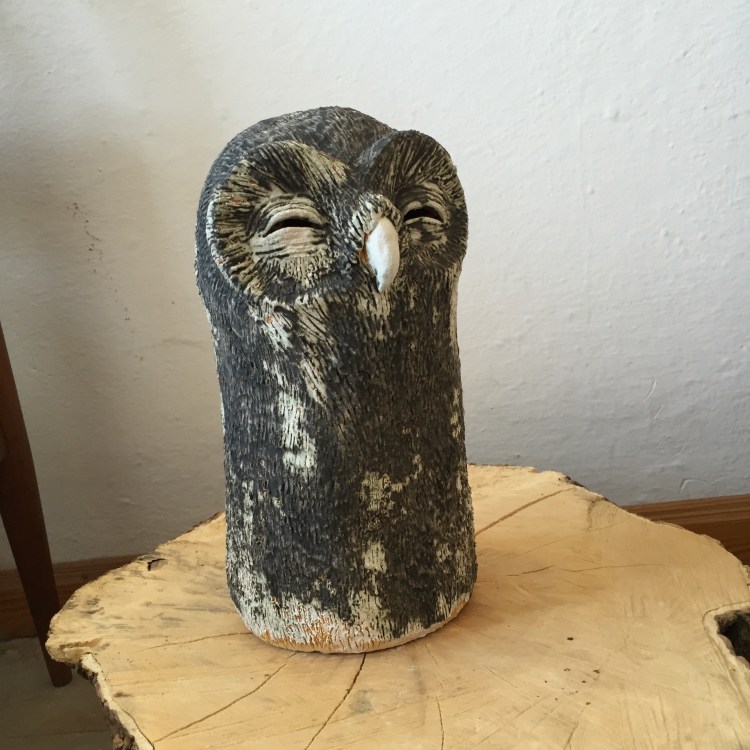 Owl spirit Posted byKimbaOctober 15, 2015Posted inUncategorizedTags:3d, art, artist, ceramics, clay, decoration, design, fineart, gallery, owl, sculpture, studio This owl ended up looking like it is made of birch bark. I am really happy with the effect of the glaze. It was meant to partner with another smaller owl but that one was sold. Share this: Click to share on X (Opens in new window) X Click to share on Facebook (Opens in new window) Facebook Like Loading... Related