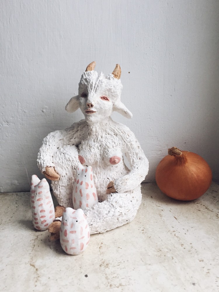 Goatmaid Posted byKimbaDecember 16, 2016Posted inUncategorizedTags:animism, art, ceramics, clay, contemporary, Goat, japanese, legend, myth, sculpture, white The Goatmaid and her helper-spirits from the formless lands. Share this: Click to share on X (Opens in new window) X Click to share on Facebook (Opens in new window) Facebook Like Loading... Related